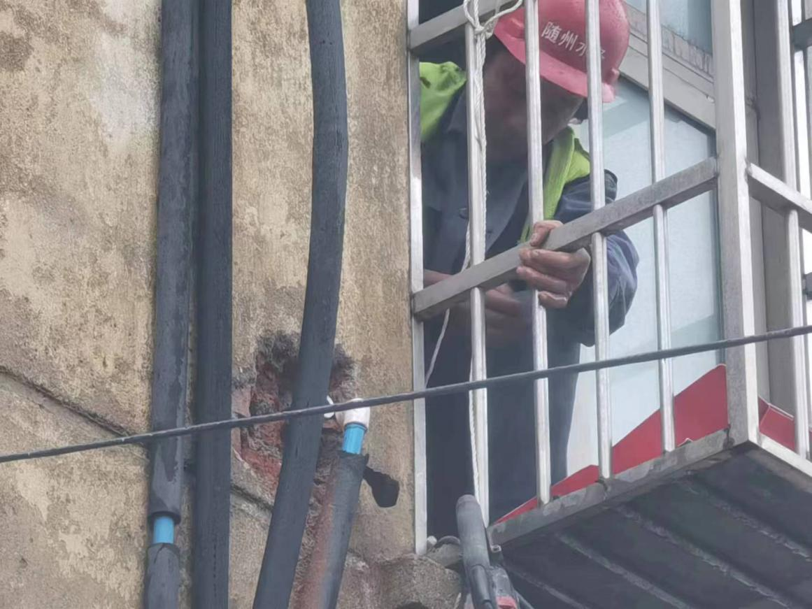 “這里水管漏了,外面的墻都打濕了,麻煩你們快來(lái)看看啊!”3月20日上午8點(diǎn)30分,建設(shè)工程公司接到市民的求助電話,稱(chēng)他家墻外有根水管在向外冒水。運(yùn)維中心牽頭人張遠(yuǎn)燈立即安排維修人員第一時(shí)間趕往現(xiàn)場(chǎng)。經(jīng)過(guò)詢(xún)問(wèn)和現(xiàn)場(chǎng)查看后,發(fā)現(xiàn)事故原因是2樓外墻進(jìn)屋處彎頭漏水,但該項(xiàng)維修內(nèi)容本不屬于公司的維修范疇。維修人員看到無(wú)助的老人,便毫不猶豫地爬上2樓陽(yáng)臺(tái),在狹窄的空間內(nèi)艱難地為老人更換破損管件。雖然是用戶(hù)房屋內(nèi)部管道漏水,水務(wù)人本著想用戶(hù)所想,急用戶(hù)所急的服務(wù)精神,不計(jì)較、不推諉的幫助用戶(hù)及時(shí)解決漏水難題。