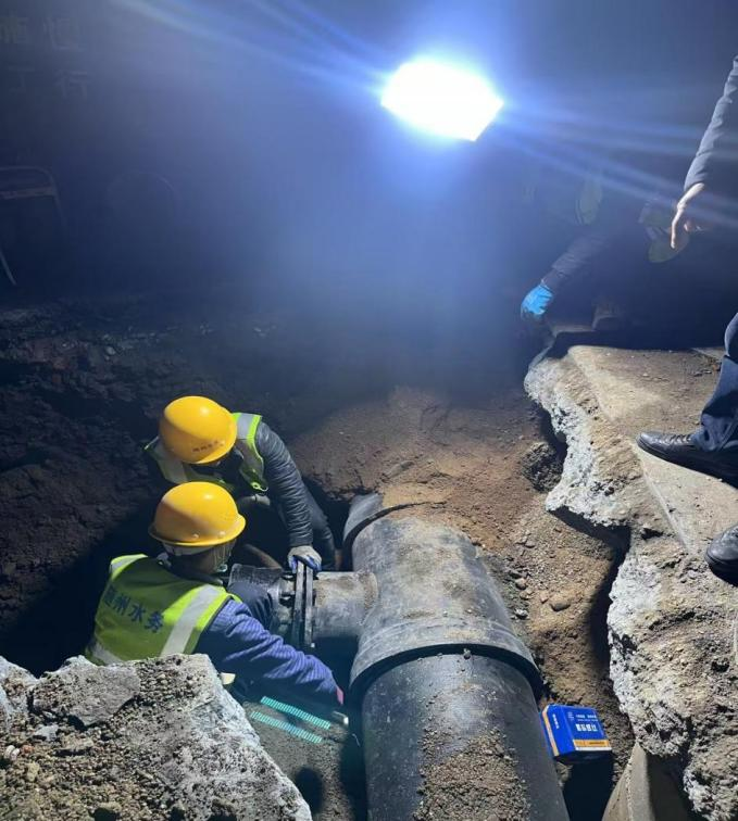 當城市沉入夜色,清河路、鹿鶴大道等四處水務(wù)工地卻亮如白晝,隨州市水務(wù)集團建設(shè)工程公司20名“水務(wù)尖兵”化身“城市管道醫(yī)生”為城市供水管網(wǎng)進行精密的手術(shù)。