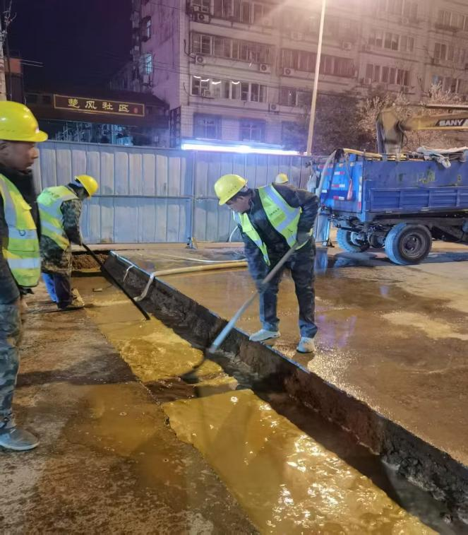 施工員和安全員組成的黨員攻堅組連續(xù)作戰(zhàn)30個小時,安全督導(dǎo)員嚴格監(jiān)測,施工噪音始終控制在55分貝以下,揚塵數(shù)值較常規(guī)施工降低40%,真正實現(xiàn)“無聲守護”。技術(shù)團隊創(chuàng)新應(yīng)用管道非開挖修復(fù)技術(shù),將施工面壓縮至傳統(tǒng)工藝的1/3。