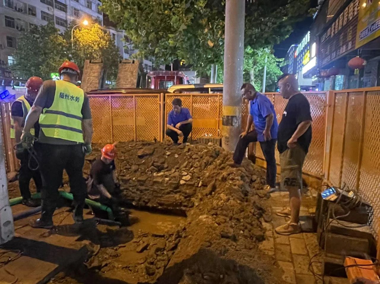 2024年2月4日22時許,隨州市水務(wù)集團24小時供水服務(wù)熱線3318118接到用戶反映稱,季梁大道與交通大道交叉口附近疑似出現(xiàn)管道漏水情況。當(dāng)時隨州正遭遇著一場歷史少見的低溫雨雪冰凍災(zāi)害天氣,通往現(xiàn)場的路面上被凍雨和冰雪覆蓋,車輛難以通行。然而“災(zāi)情就是命令”,面對持續(xù)漏水可能造成更加嚴(yán)重的后果,周新和他的“黨員突擊隊”迎寒而上,冒雪“逆行”,克服重重困難抵達現(xiàn)場,連夜展開搶修工作。經(jīng)過現(xiàn)場勘查,終于查找出漏水原因。但在嚴(yán)寒天氣下,機械進出困難,給搶修帶來了極大難度。