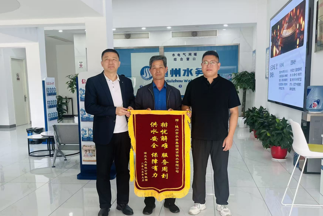 一面錦旗,一份認(rèn)可。近日,湖北正大有限公司代表將一面印著“排憂解難 服務(wù)周到 供水安全 保障有力”的錦旗,鄭重送到隨州市水務(wù)集團(tuán)城市供水公司工作人員手中。錦旗上的字跡雖簡,卻滿含企業(yè)對供水服務(wù)的由衷感謝,更成為對隨州水務(wù)人專業(yè)精神與責(zé)任擔(dān)當(dāng)?shù)纳鷦影劇?/span>