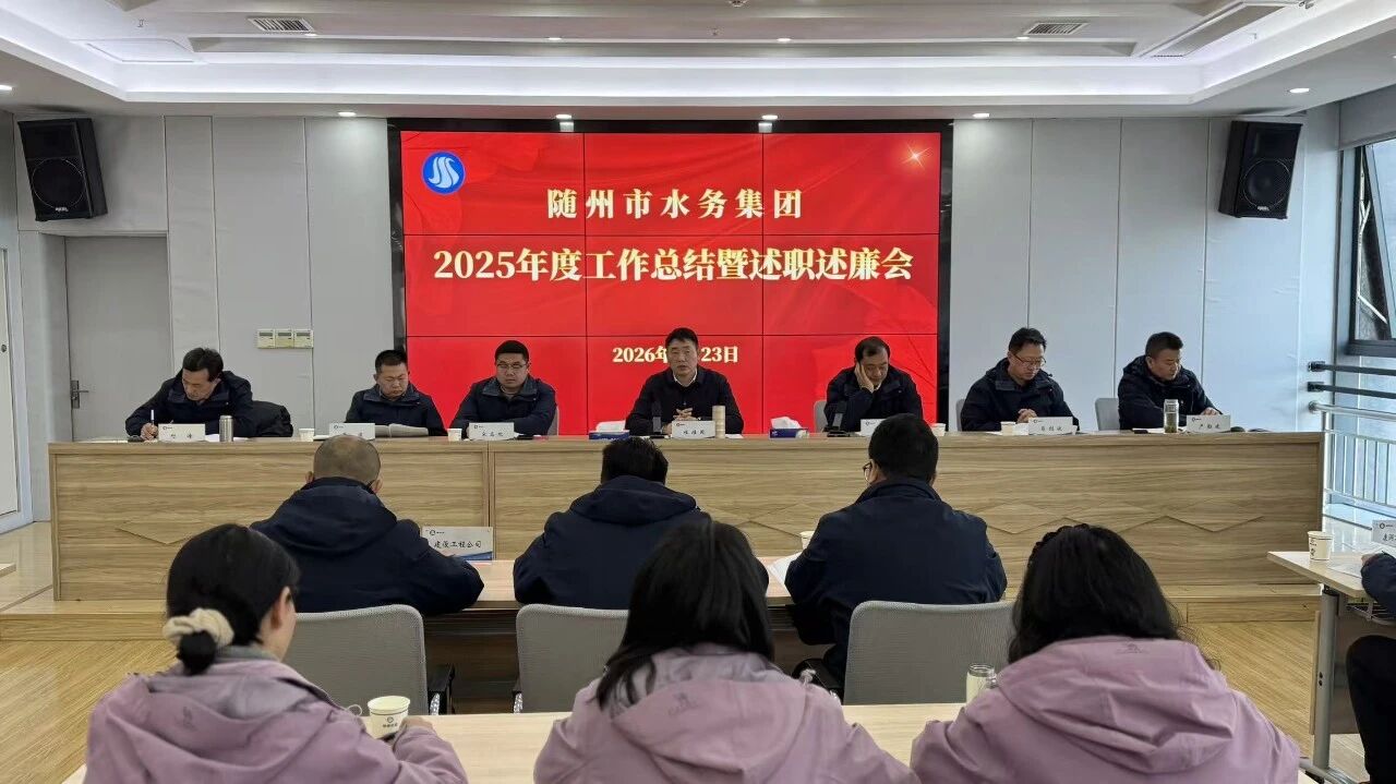 2026年1月23日,隨州市水務(wù)集團(tuán)2025年度工作總結(jié)暨述職述廉會(huì)議隆重召開(kāi)。會(huì)議全面總結(jié)過(guò)往成效、精準(zhǔn)謀劃未來(lái)發(fā)展,凝聚推動(dòng)集團(tuán)高質(zhì)量發(fā)展的強(qiáng)大合力。集團(tuán)黨總支書記、董事長(zhǎng)桂維國(guó)出席并作重要講話,黨總支副書記、總經(jīng)理嚴(yán)賢江主持會(huì)議,集團(tuán)領(lǐng)導(dǎo)班子成員、各公司班子成員及全體干部職工參會(huì)。