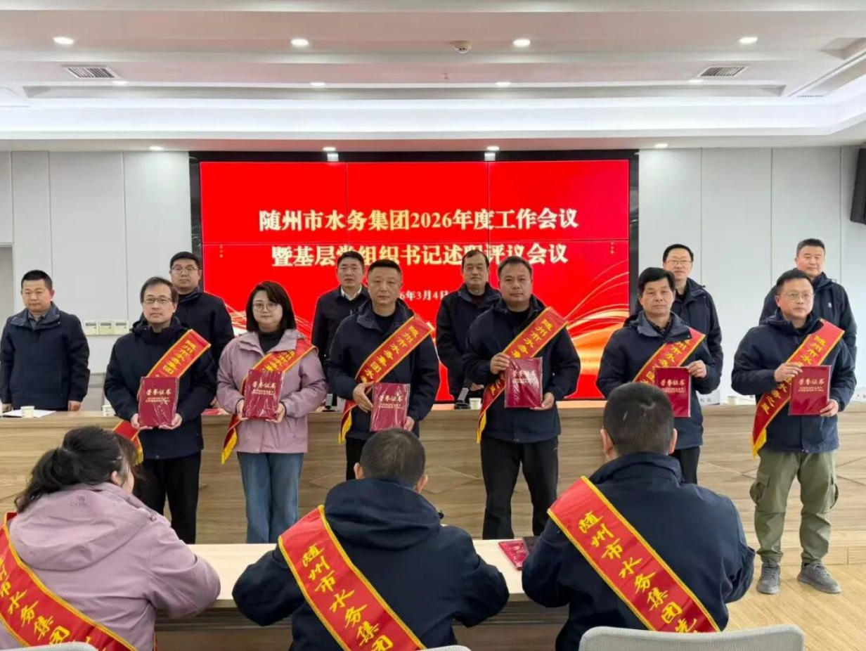 3月2日,隨州水務(wù)集團(tuán)召開2026年工作會議暨基層黨組織書記述職評議會議。會議深入學(xué)習(xí)貫徹上級精神,全面總結(jié)2025年工作,表彰先進(jìn)典型,系統(tǒng)部署2026年重點(diǎn)任務(wù),動員全體干部職工實(shí)干篤行、奮勇爭先,奮力開創(chuàng)集團(tuán)高質(zhì)量發(fā)展新局面。集團(tuán)黨總支書記、董事長桂維國出席會議并講話,集團(tuán)黨總支副書記、總經(jīng)理嚴(yán)賢江主持會議。
